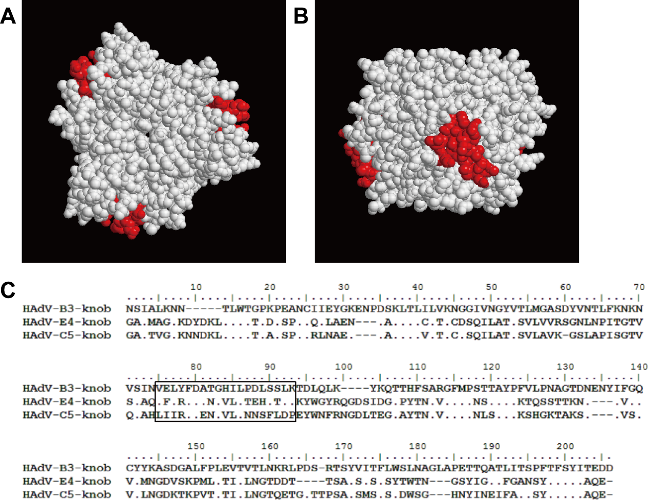 图2. 人腺病毒纤突蛋白头节区特异性抗体识别的交叉抗原表位